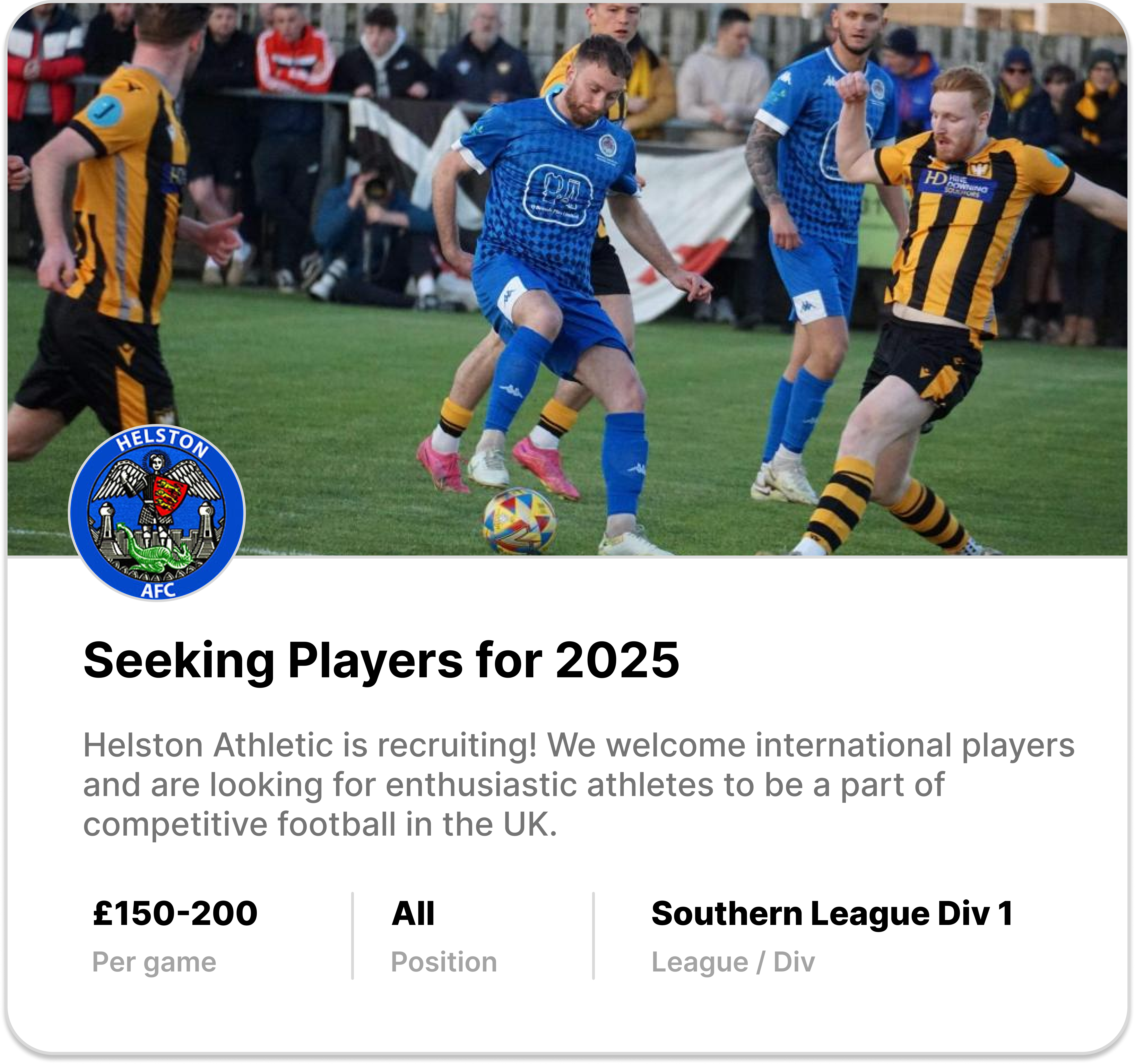 Narrow your search with precision using advanced filters to find the ideal player for your team. Customise your criteria to match skill levels, positions, locations, and more, making recruitment fast, efficient, and tailored to your needs.